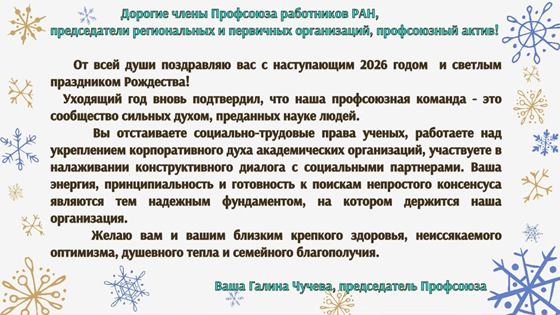 Cовет Нижегородской региональной организации сердечно поздравляет всех членов Профсоюза работников РАН с наступающим Новым годом! |
